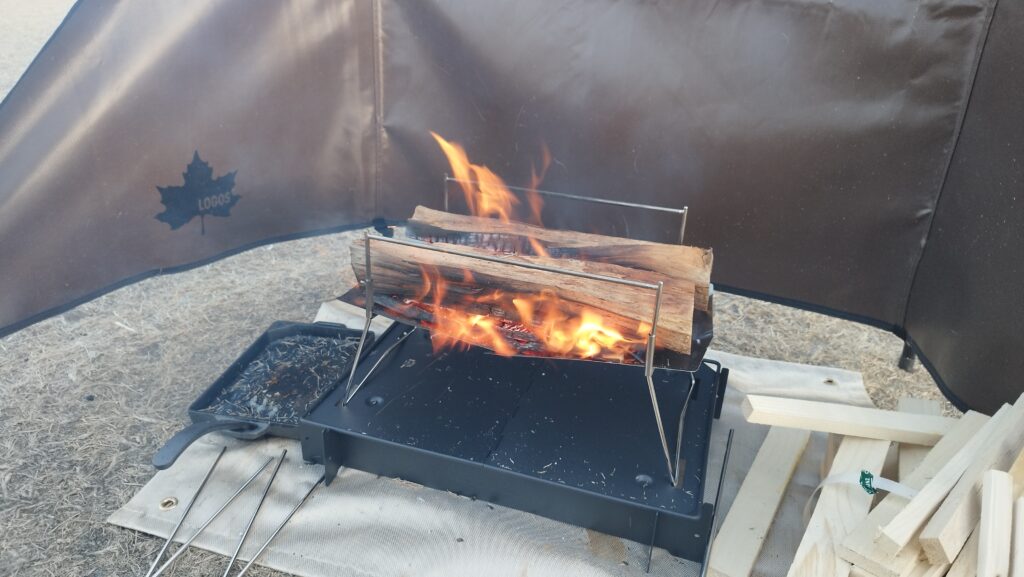 僕も一昨年の福袋で購入しましたが、収納時のコンパクトさや使い勝手の良さから1軍ギアとして重宝しています。装備を抑えたいときはHAKOSUKAのみで、オートキャンプならオプションも一緒に、とシチュエーションに合わせて使い分けると良いでしょう。時には軽く、時には豪華装備で、と自分自身の腰の様子に合わせての使い分けができる焚火台です。