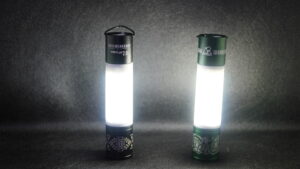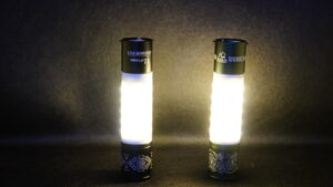 旧モデルのMINIMALIGHT弱で10時間、強で6時間ほど、2.0では弱で90時間、中で20時間、強で10時間程度しか点灯しません。ですがそこはソレ。カスタムと用途を分けて複数本持ちし使い分けるのも手でしょう。テーブル用にカスタムして弱運用、最大200lmの光量を生かして周囲を照らすメインランタンとしての運用。使い分けることで楽しみも増えるというものです。