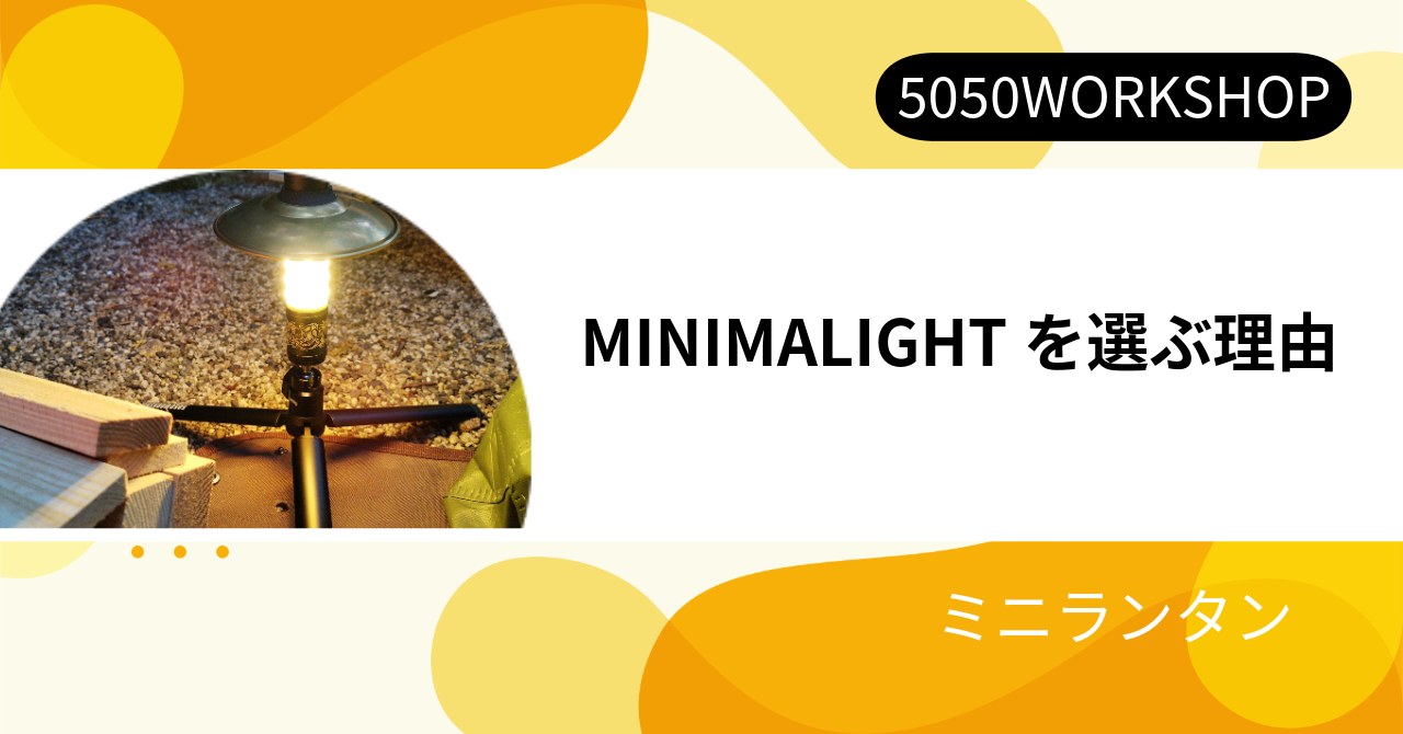現在のキャンプ界隈で最もユーザーが多いランタンと言えばGoalZeroであることは間違いないでしょう。しかしながらワタクシ、世間で流行っているものに関して、(余程欲しい理由が無い限り)避けて通る傾向にあります。また当時プレ値がついてとんでもない値段になっていたこともあって入手には躊躇していたのも事実。そんな時に見つけたのが5050WORKSHOPさんのMINIMALIGHTでした。そしてその使い勝手の良さに魅了され、1軍ギアとして使い続けています。